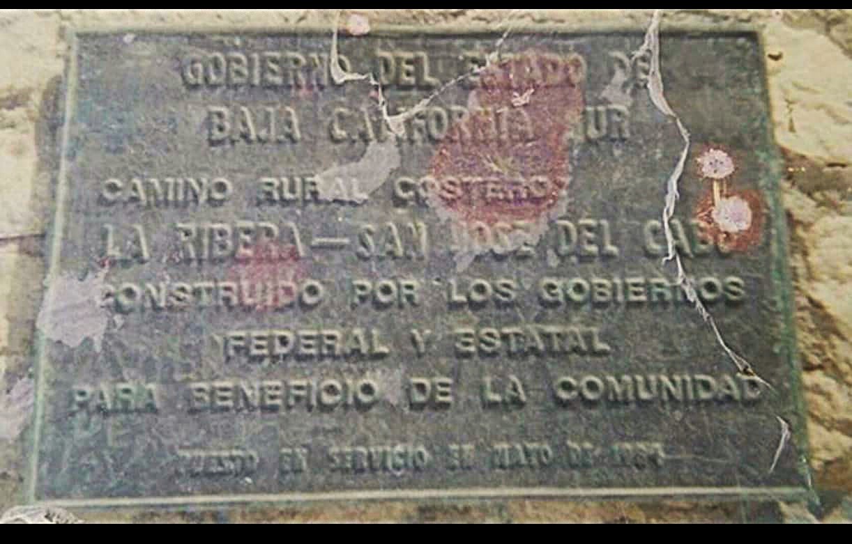 En alguna plática con Alberto Villada, cuando estaba al frente del Club Campestre de C’Questro, y que hoy día dirige Puerto Los Cabos, me dijo que, si el camino no estaba registrado ante el Registro Público de la Propiedad, los propietarios lo podían reclamar (sic). Al respecto es preciso hacer notar que, en dicho camino, en la curva donde está el mirador de Punta Gorda, se instaló la placa conmemorativa con la leyenda: Gobierno del Estado de Baja California Sur. Camino Rural Costero construido por los gobiernos Federal y Estatal para beneficio de la comunidad; puesto en servicio en mayo de 1984”. Si ésta placa no oficializa el estatus de dicho camino, también se C’Questro el significado.