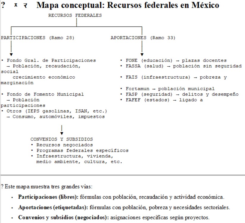 Sin hacernos bolas, la asignación de recursos federales a entidades federativas y municipios en México se hace con base en un marco jurídico y criterios definidos en la Constitución Política de los Estados Unidos Mexicanos, y de ella se derivan la Ley de Coordinación Fiscal, la Ley de Presupuesto y Responsabilidad Hacendaria, y el Presupuesto de Egresos de la Federación (PEF) aprobado cada año por la Cámara de Diputados, considerando criterios bien definidos. Estos criterios se especifican en los mecanismos de los Ramos 28 y 33.