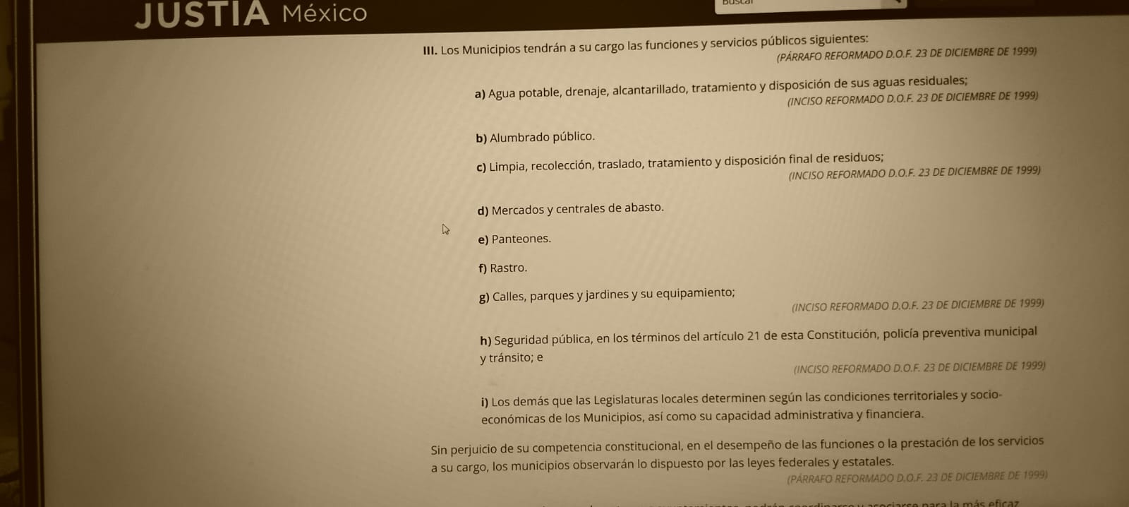 En lo personal, percibo una discrepancia constante en el cumplimiento y/o ejercicio de lo que manda la Constitución en el Artículo 115, el cual no sólo le da autonomía y/o libertad administrativa y operativa a los Municipios, le ordena una serie de acciones que no se ven claras en Los Cabos, imagino, por el flujo de quejas en tal sentido de paceños y sudcalifornianas(os). De inicio el Art. 4 referente a la calidad de vida, el ambiente sano y el agua potable de calidad y suficiente.